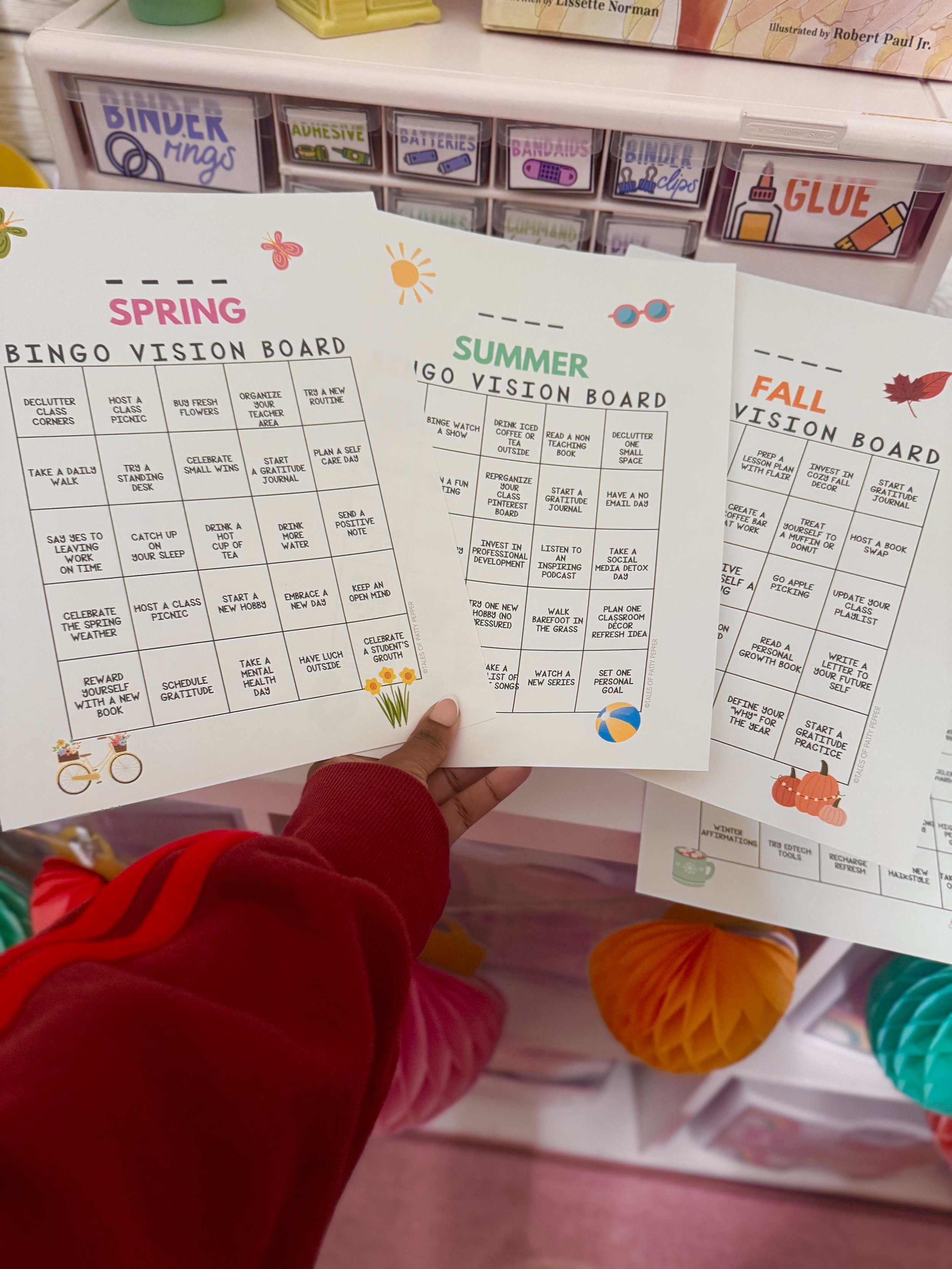 These Seasonal Vision Bingo Boards are designed to align with the natural rhythms of teaching and life. Each one includes relatable, achievable tasks that help you reset and refocus without feeling overwhelmed.